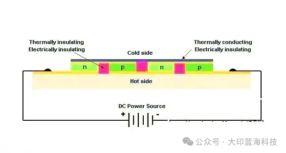 TEC(Thermoelectric Cooler),也被稱為半導體制冷片,在眾多設備中發揮著關鍵的溫度控制作用。其基本工作原理源于 珀耳帖效應,這是一種熱電效應,表現為金屬接觸點處的一側吸熱而另一側放熱。由于純金屬的熱電效應相對較小,因此在實際應用中,我們通常采用半導體材料來顯著增強這一效應。通過改變電流的方向,可以輕松切換TEC的冷熱面,這本質上是在外加電場的作用下,利用電子流將內能從一側轉移到另一側的過程。