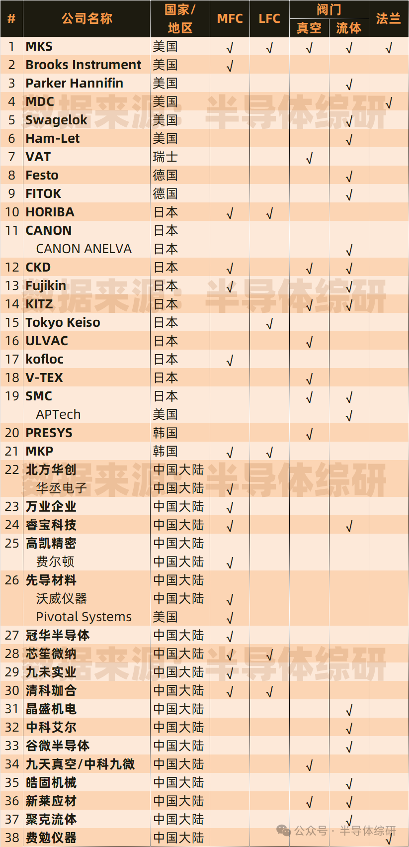 整理一下半導體設備配件供應商數據:流體控制、閥門件...